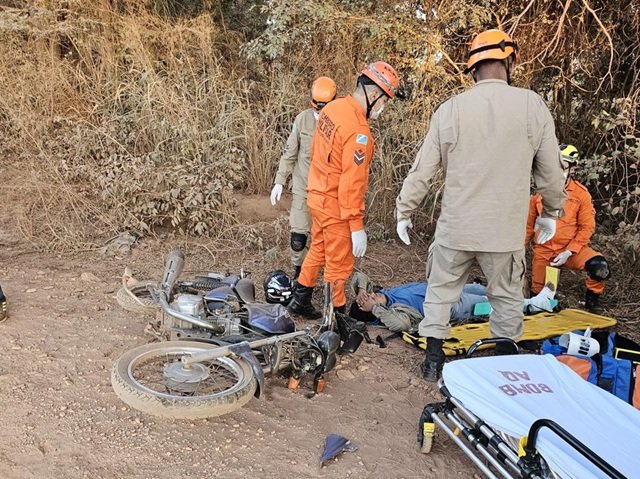 Ao chegarem ao local, os militares encontraram a vítima caída ao solo, em decúbito dorsal (deitada de costas), consciente e orientada. O homem apresentava suspeita de fratura no membro inferior direito.