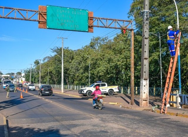 Ponte Nova em Aquidauana recebe manutenção na iluminação pública