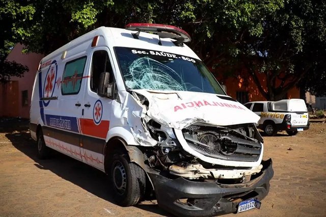 Na curva próxima ao posto, havia marcas de frenagem, indicando uma possível tentativa de evitar a batida. A ambulância, que seguia para São Gabriel do Oeste, teve a frente completamente destruída e permaneceu estacionada no posto de combustível, aguardando remoção por um guincho da seguradora.