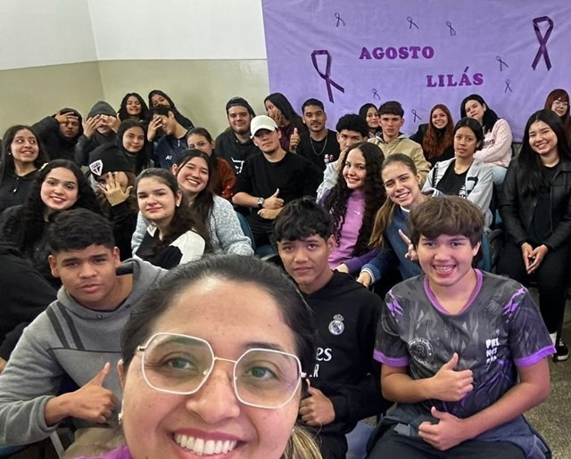 A Polícia Civil, por intermédio da Delegacia de Atendimento à Mulher (DAM) de Jardim, participou na manhã desta terça-feira, 12/08, de uma palestra voltada aos alunos do 2º ano da Escola Estadual Rufino, no município de Jardim, como parte das ações da Operação Shamar e da campanha Agosto Lilás.