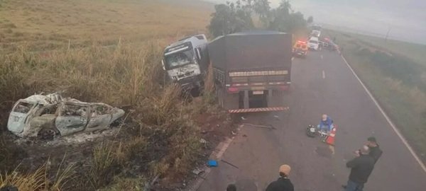 a Sete Quedas e não conseguiu evitar a colisão. A batida frontal foi tão violenta que o carro de passeio ficou completamente destruído pelas chamas.