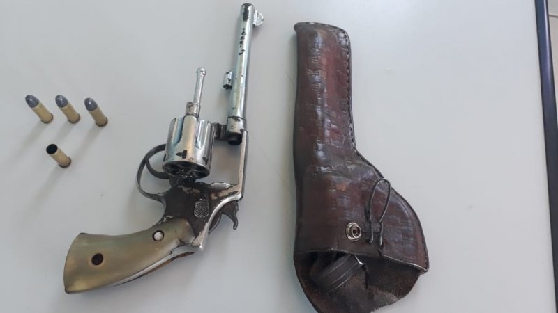 Diante dos fatos, o autor foi preso em flagrante e conduzido à Delegacia de Polícia Civil, juntamente com o revólver, cal.38, três munições intactas e uma deflagrada, para as providências cabíveis.