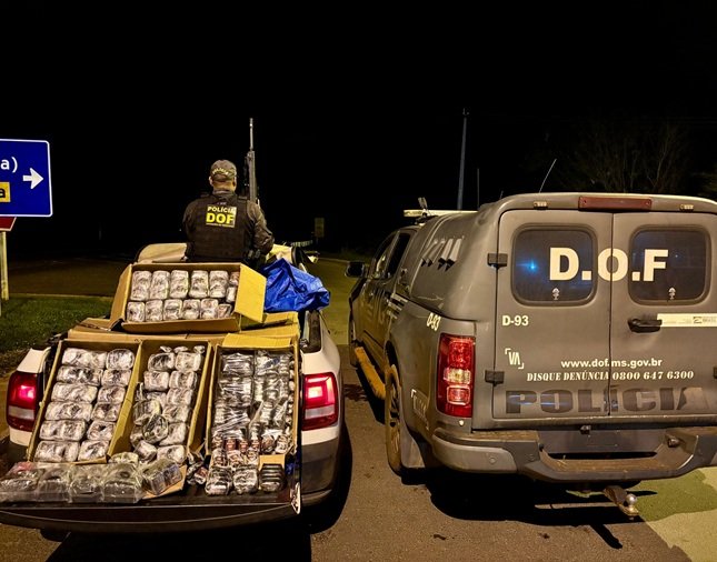 A mulher, a droga e o veículo foram encaminhados à Delegacia da Polícia Federal de Naviraí.