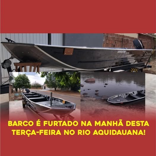 Na manhã desta terça-feira (21), um barco foi furtado nas margens do Rio Aquidauana, nas proximidades da ponte Boiadeira. Segundo informações do proprietário, a embarcação estava ancorada nos fundos de sua propriedade e desapareceu por volta das 6h.