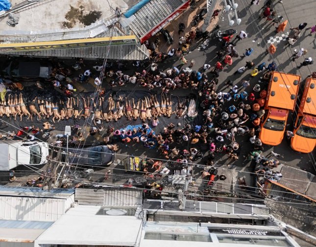 Cerca de 50 corpos foram retirados de uma área de mata do Complexo da Penha por moradores, após a operação realizada pelas forças de segurança do estado, nessa terça-feira (28). Os corpos foram reunidos na Praça São Lucas, no centro da comunidade, e de acordo com os moradores, não fazem parte da contagem oficial de 64 mortos - 60 suspeitos e 4 policiais. A Polícia Militar foi procurada, mas ainda não se pronunciou.