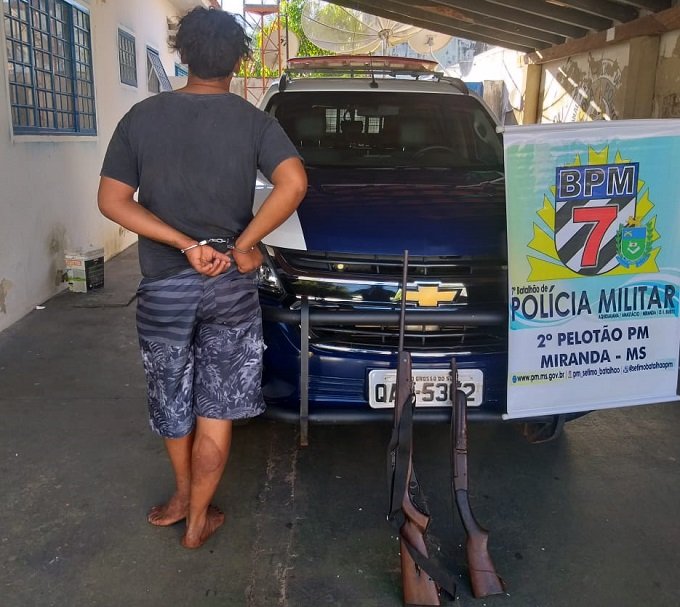 Conhecido no meio policial pela prática de diversos crimes em Miranda, E.R..S, 32 anos, conhecido como “Dindo”, foi preso na última sexta-feira (12) por equipe da Radiopatrulha, da Polícia Militar, ao ser flagrado com armas em uma propriedade rural do município. O homem também estava foragido da Justiça.