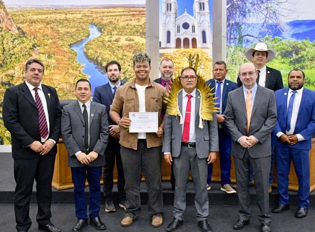 De autoria do vereador Fred Frank, a Moção de Aplauso é concedida por meio da Câmara Municipal ao jovem cantor gospel Guilherme Amority dos Santos Cece, indígena terena da Aldeia Lagoinha, em Aquidauana.