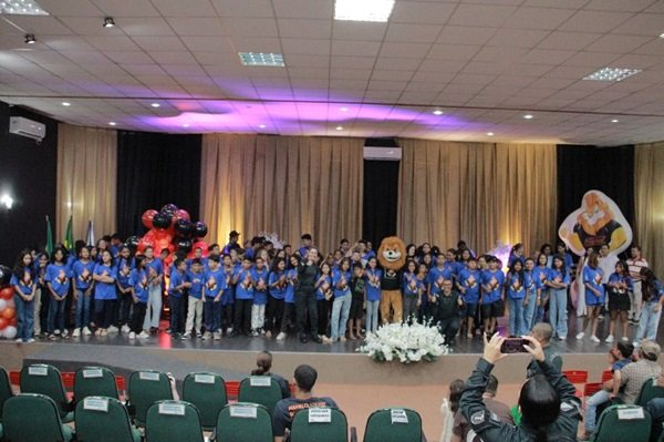Durante o evento, os estudantes receberam certificados e medalhas em reconhecimento ao empenho e à participação nas atividades do programa, que trabalha valores, prevenção e tomada de decisões seguras. A celebração também contou com a presença do DARE, mascote oficial do PROERD, que animou a plateia e marcou a noite de forma especial para os formandos.
