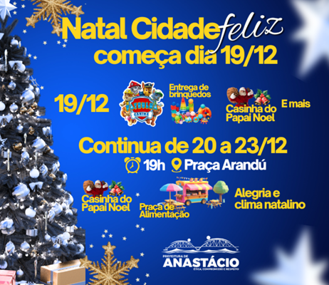 O Natal Cidade Feliz chega a Anastácio trazendo uma programação especial, pensada para encantar crianças, jovens e adultos, com muita magia, alegria e o verdadeiro espírito natalino.