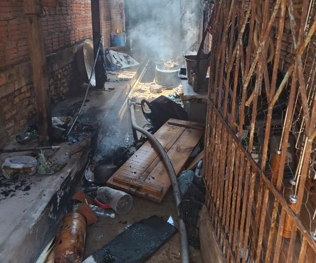 As chamas se espalharam rapidamente, atingindo móveis e objetos domésticos, como cama, guarda-roupas, mangueiras, um botijão de gás P13, além de materiais de amianto e madeiramento.