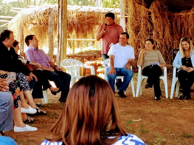 O prefeito de Aquidauana Odilon Ribeiro, a vice-prefeita Selma Suleiman e a equipe da Fiocruz, estiveram reunidos nesta quarta-feira (17), com a comunidade da aldeia Água Branca.
