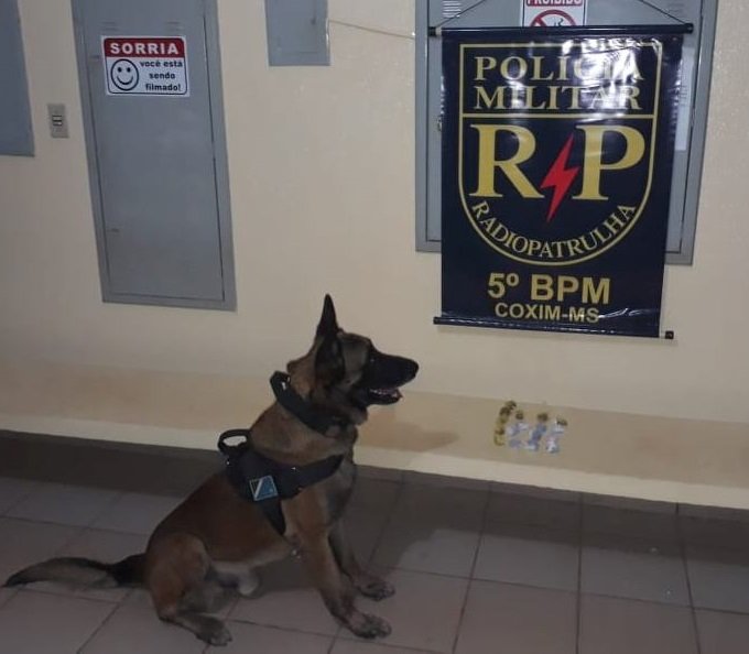 Com o conselho tutelar e o apoio dos militares do canil, a equipe de serviço deslocou até a casa do autor na Rua Frei Cirino na Vila Bela e realizaram varreduras pelo local com intuito de achar o entorpecente, que só foi possível com o auxílio do cão devidamente treinado, onde encontrou na gaveta do guarda roupas mais 16 paradinhas de maconha que totalizaram 95 gramas.