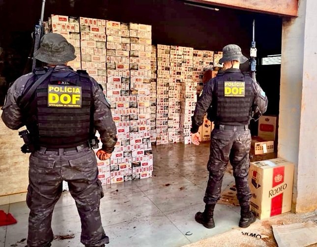 Na primeira ocorrência, no distrito de Cruzaltina, em Douradina, que contou com apoio do helicóptero do DOF e policiais da CGPA (Coordenadoria-Geral de Policiamento Áereo), o DOF apreendeu 125 mil maços de cigarros em um imóvel utilizado como depósito.