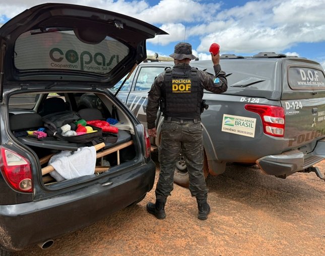 Na vistoria do porta-malas, os militares encontraram uma bolsa contendo vários volumes do entorpecente. Questionados, os dois confessaram que pegaram a droga em Coronel Sapucaia e que receberiam R$ 1,8 mil pelo transporte até o Paraná.