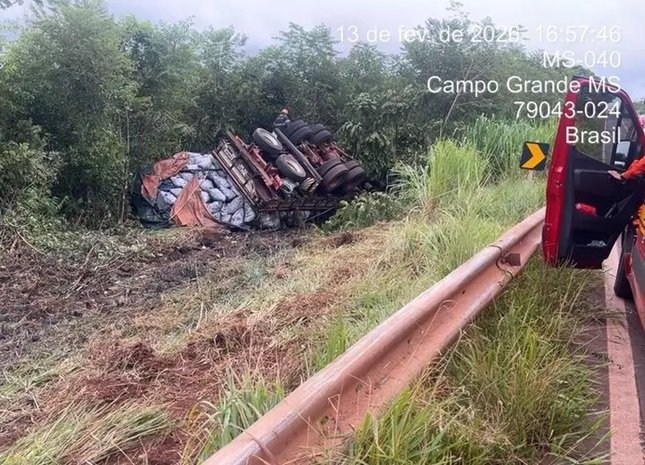 Um motorista de caminhão, ainda não identificado, morreu após o veículo tombar no km 12 da MS-040, entre Campo Grande e Santa Rita do Pardo, na tarde desta sexta-feira (13).