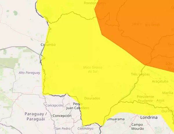 Em Campo Grande, os termômetros chegam aos 27°C. Em Dourados e Três Lagoas, a máxima atinge 29°C. Corumbá deve registrar 32°C, uma das mais altas do dia. Coxim e Paranaíba ficam em torno de 29°C, enquanto Aquidauana pode alcançar 30°C.