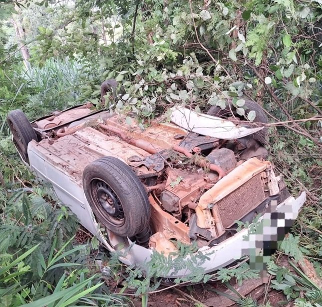 Cansaço ao volante provoca capotamento de carro na BR-262 em Miranda