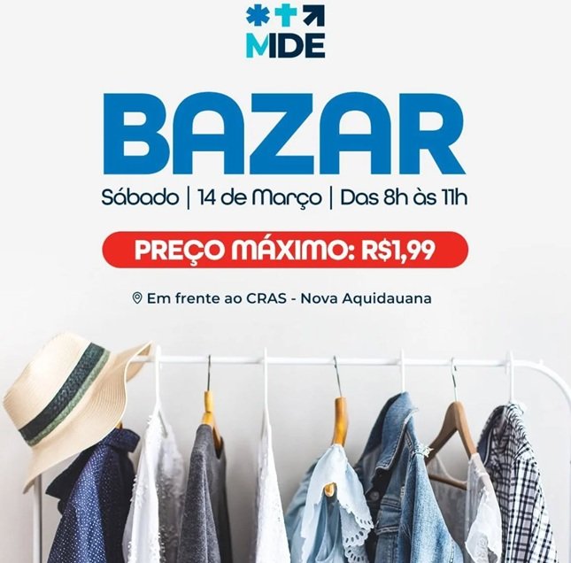 O evento será realizado a partir das 8h, em frente ao Centro de Referência de Assistência Social (CRAS) da região de Nova Aquidauana. A ação tem como objetivo arrecadar recursos e oferecer roupas a preços acessíveis para a comunidade.