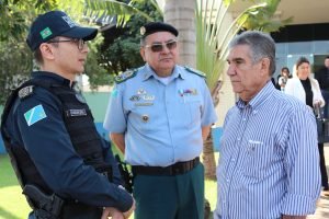 O Comandante Geral e o Subcomandante Geral da PMMS participam da solenidade de assinatura do convênio do sistema de videomonitoramento da cidade de Maracaju