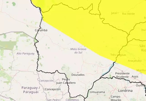 Já nas regiões norte, leste e bolsão, onde estão municípios como Três Lagoas, Paranaíba e Coxim, as temperaturas devem variar entre 20°C e 24°C nas mínimas e entre 29°C e 34°C nas máximas, com ocorrência de pancadas de chuva e temporais isolados.