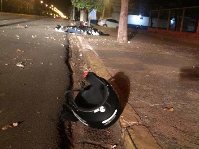 Motociclista de 23 anos morreu na madrugada desta sexta-feira (26) após bater contra uma árvore no canteiro de uma avenida em Três Lagoas.