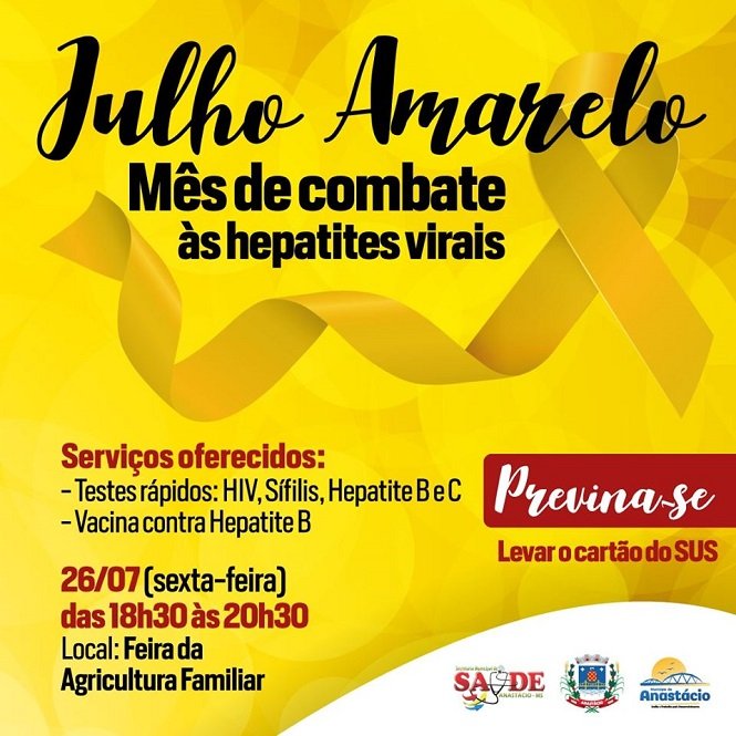 A Secretaria de Saúde de Anastácio desenvolve hoje uma ação de combate e conscientização sobre as Hepatites Virais durante a realização da Feira da Agricultura Familiar na Praça Garibaldi Medeiros.