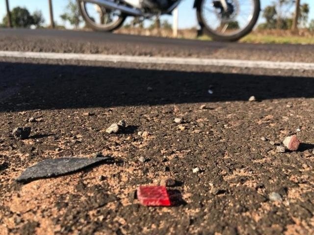 Nesta manhã ainda era possível encontrar pedaços da moto pelo asfalto (Foto: Ronie Cruz)