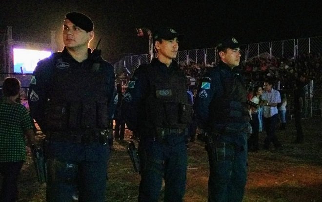 Já no interior, era notória a presença dos policiais militares circulando por entre as pessoas, camarotes e palco, observando tudo e todos.