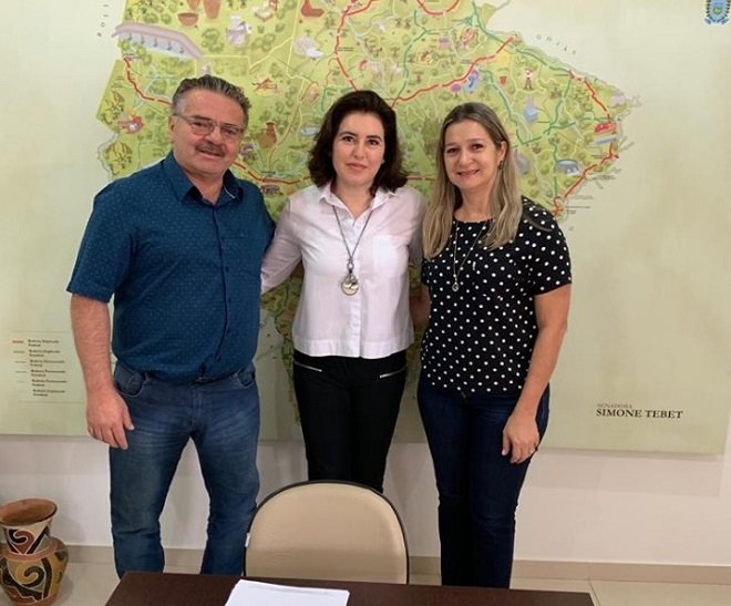 Mauro e Selma pediram também à Simone Tebet a inclusão de emenda parlamentar ao Orçamento Geral da União, na ordem de R$ 1 milhão, destinada ao custeio de despesas na área da saúde do município.