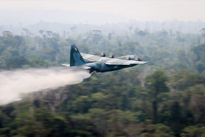 A Força Aérea Brasileira (FAB) está empregando, desde ontem (24), duas aeronaves C-130 Hércules no combate aos focos de incêndio na Amazônia. Os aviões são operados pelo Primeiro Esquadrão do Primeiro Grupo de Transporte e têm usado o aeroporto de Porto Velho como base.