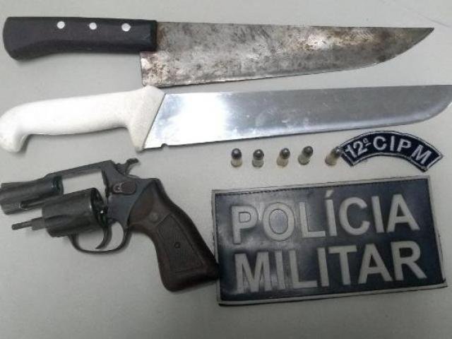 Duas facas e um revólver foi apreendido com o autor (Foto: divulgação/Polícia Militar)