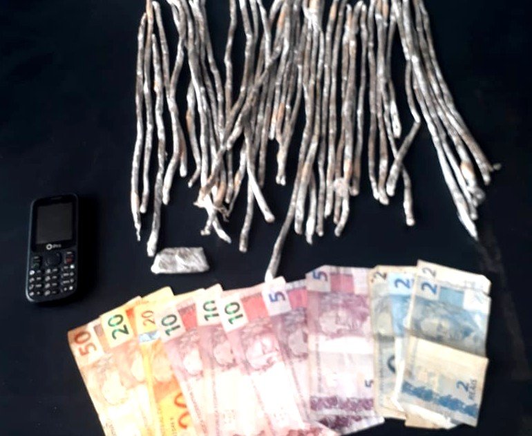 O suspeito foi abordado e com ele os policiais encontraram dinheiro fracionado e pequena quantidade de droga. Ele apontou um terreno para os policiais, como sendo o esconderijo do entorpecente que comercializava. No local os policiais encontraram e apreenderam 40 tiras de maconha.