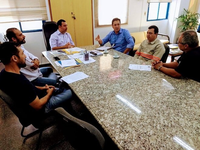Participam da reunião com o prefeito Odilon Ribeiro, Wilson Urunaga - técnico de medição, Emerson Almeida - técnico operacional, vereador Valter Neves, Odilson e o secretário municipal de Planejamento, Habitação e Urbanismo, Ronaldo Ângelo.