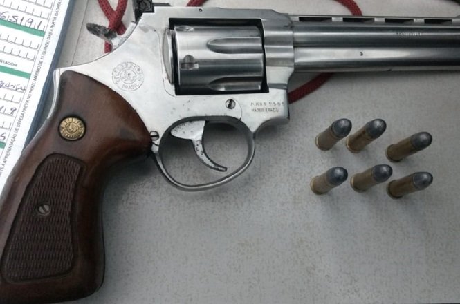 Visto aquilo, os policiais militares fizeram a abordagem e, inicialmente, já constataram que o condutor, um homem de 59 anos de idade não possuía a CNH, tampouco portava os documentos do veículo. Durante as buscas no veículo ainda foi encontrado um revólver Magnum calibre .357 e 06 munições com o motorista. Com a outra pessoa que estava no carro foi encontrado uma faca, tipo “canivete”.