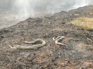 Em cenário devastado, cobras são encontradas mortas pelo fogo