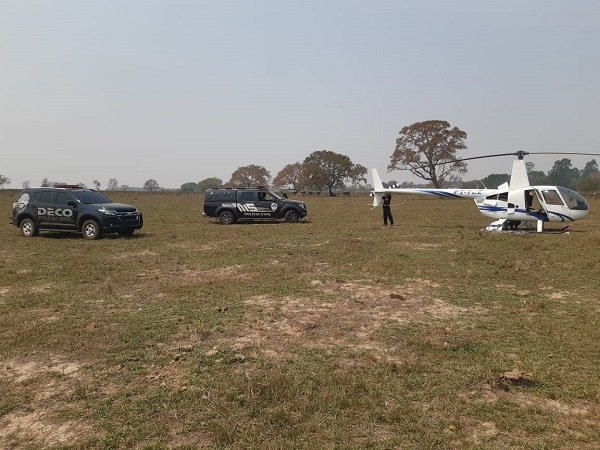Na manhã de quinta-feira (12), a Polícia Civil de Mato Grosso do Sul realizou operação conjunta e apreendeu um helicóptero que pousou irregularmente em propriedade privada e que seria utilizado por criminosos para carregamento de entorpecentes.