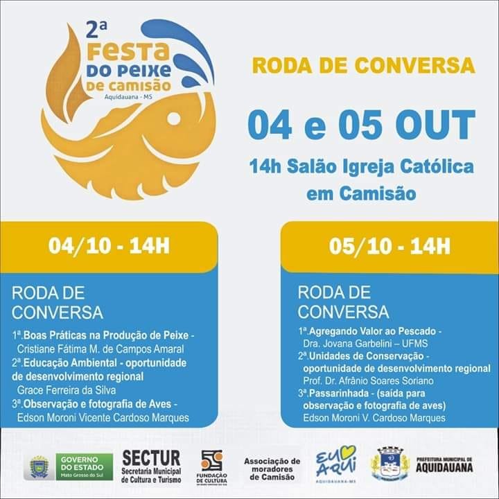 Com os temas "Boas Práticas na Produção de Peixe", "Educação Ambiental - Oportunidade de Desenvolvimento Regional" e "Observação e Fotografia de Aves" entraremos no clima da Festa do Peixe que promete ser a atração do final de semana para as famílias de Aquidauana e região!