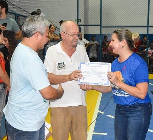 A prefeita em exercício Selma Suleiman, vereadores de Aquidauana, secretários municipais participaram da recepção aos atletas finalistas na quadra e entregaram a premiação. “Eu e o prefeito Odilon Ribeiro estamos muito felizes em ver o poliesportivo funcionando, repleto de pessoas. Aqui nos jogos tivemos uma interação entre alunos da cidade, aldeias e os distritos, amizades nasceram e todos se divertiram nos dias de jogos. Parabéns a todos, foi um campeonato de sucesso”, salientou a prefeita em exercício, Selma Suleiman.
