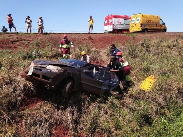 Mulher de 28 anos de idade ficou ferida na manhã desta sexta-feira (11) após o carro que conduzia, um Fiat Palio preto, sair da pista e capotar no barranco, na BR-163, em Dourados, a 233 km de Campo Grande. O acidente ocorreu na região do Parque das Nações, na saída para Campo Grande.