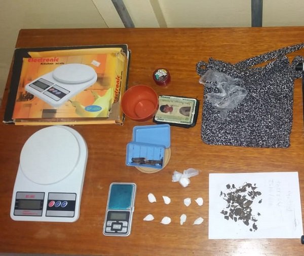 No quarto da suspeita, em cima de sua penteadeira, foram flagrados nove paradinhas de cocaína, e no armário da cozinha maconha, além de duas balanças de precisão, para pesar a droga.