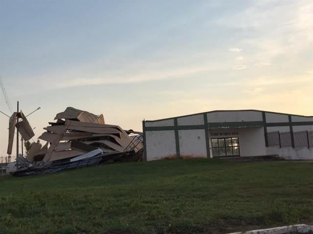 Clube de laço do município ficou destelhado. (Foto: Bela Vista News)
