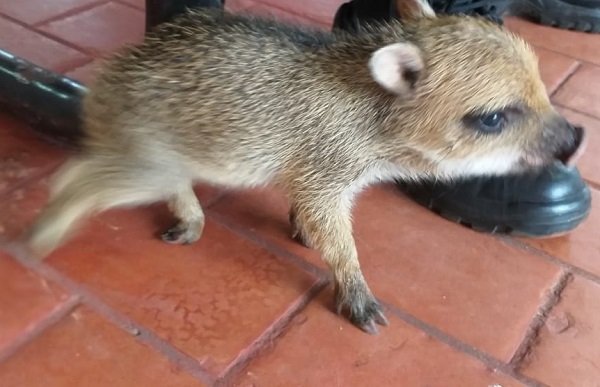 Policiais Militares Ambientais de Coxim receberam no quartel um filhote de animal silvestre da espécie queixada (Tayassu pecari). O animal foi encontrado à margem da rodovia BR 163 e entregue por um funcionário da CCRMSVias na terça-feira (5).