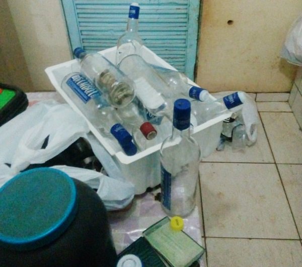 No local foram observadas diversas garrafas de bebida alcoólica (garrafas de vodka) e narguilé. Entre os convidados adultos, três adolescentes, sendo dois meninos e uma menina, estariam fazendo uso de álcool e tabaco.