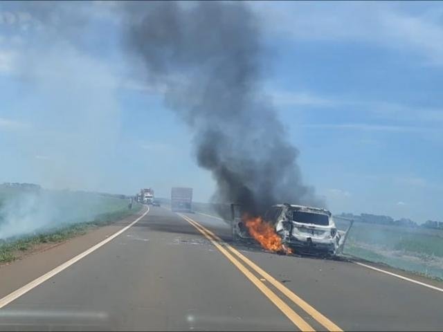 Veículo usado por assaltantes foi incendiado no meio da estrada para dificultar perseguição (Foto: Direto das Ruas)