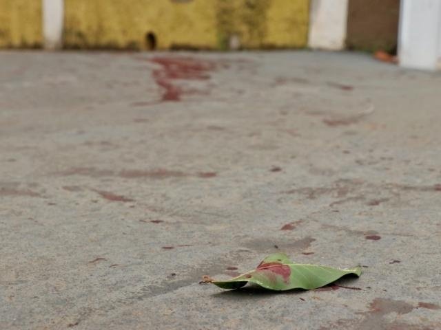 Marcas de sangue nas proximidades do quartel. (Foto: Henrique Kawaminami)