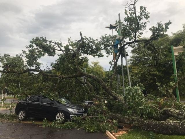 No prédio da Governadoria, no Parque dos Poderes, a chuva acompanhada de ventos no início da manhã derrubou uma árvore no estacionamento. Os galhos atingiram quatro veículos que estavam estacionados no local, mas sem causar estragos. Todos eles pertencem ao Estado.