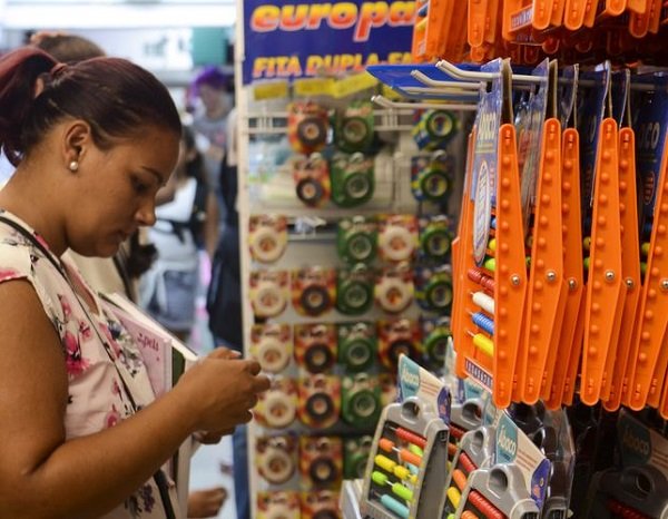 Venda a varejo de material escolar em lojas da 25 de Março, São Paulo. - Rovena Rosa