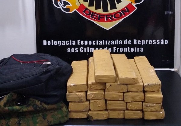 Realizada a abordagem, os policiais constataram que nas duas mochilas haviam diversos tabletes de maconha. Após a pesagem, a droga totalizou 18,2 kg (dezoito quilos e duzentas gramas).