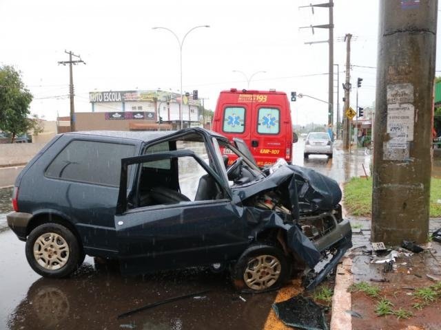 Na chuva, médico bate carro em poste enquanto seguia para o plantão
