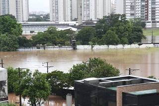Em três horas, o volume do rio Pinheiros atingiu o maior nível desde que o governo começou a monitorar o sistema, em 1967, segundo a Secretaria de Infraestrutura e Meio Ambiente do Estado. O transbordamento do Pinheiros e do Tietê em diversos trechos contribuiu para travar a circulação na cidade.